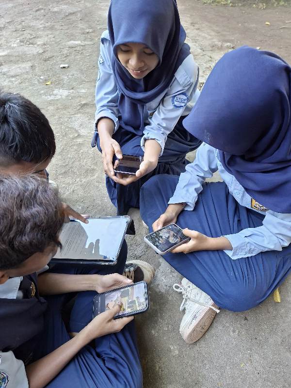 Seperti yang terlihat hari ini, sekelompok siswa berseragam duduk melingkar di luar kelas, memanfaatkan gawai dan tablet mereka untuk berdiskusi dan mengakses materi pelajaran. Foto tersebut menunjukkan empat orang siswa yang aktif menggunakan perangkat digital untuk melihat informasi, berinteraksi, dan mencatat data menggambarkan pergeseran dari pembelajaran konvensional menuju format digital yang lebih interaktif.