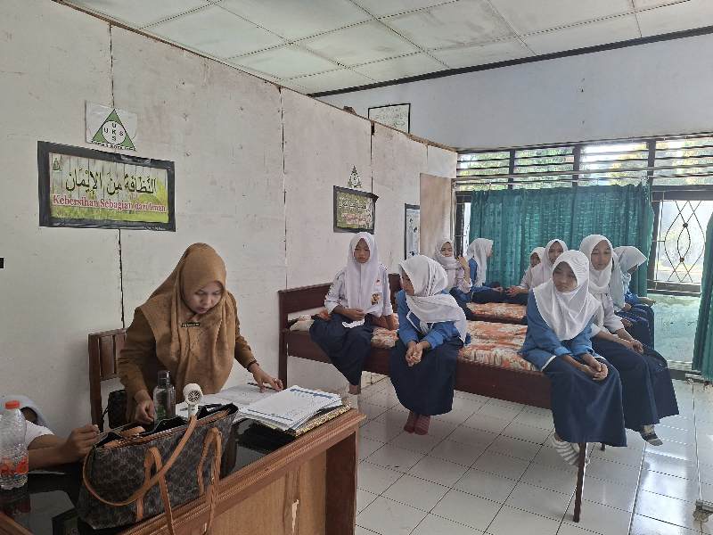 Dalam pantauan hari Senin ini, sejumlah siswi terlihat memanfaatkan fasilitas UKS. Beberapa siswi mengenakan seragam putih biru dan jilbab, tampak beristirahat dengan nyaman di tempat tidur yang tersedia. Suasana ini menunjukkan bahwa UKS telah menjadi tempat istirahat dan penanganan awal yang diandalkan saat murid mengalami keluhan kesehatan ringan, seperti kelelahan atau pusing, yang umum terjadi di lingkungan sekolah.