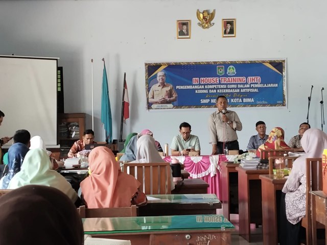 Kota Bima, (25 Oktober 2025) – Transformasi digital dalam dunia pendidikan menjadi fokus utama dalam kegiatan In House Training (IHT) yang diselenggarakan oleh SMP Negeri 1 Kota Bima. Kegiatan yang bertema "Koding dan Kecerdasan Artifisial (Artificial Intelligence/AI) dalam Pembelajaran" ini dibuka secara resmi di ruang guru sekolah tersebut pada Hari, Sabtu tanggal 25 Oktober 2025 dan karena waktunya terbatas maka kegiatan IHT ini dilanjutkan sabtu depan, tanggal 1 November 2025.