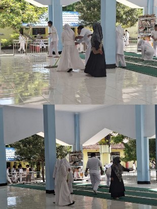 Kegiatan ini secara efektif menciptakan "ruang yang tepat" bagi anggota OSIS Imtaq untuk tidak hanya memimpin secara spiritual, tetapi juga memberikan keteladanan praktis dalam tanggung jawab harian. Dengan mengenakan pakaian putih, beberapa anggota OSIS, baik putra maupun putri, terlihat langsung mengambil alat kebersihan untuk menyapu dan merapikan lantai keramik serta karpet di serambi masjid sekolah.