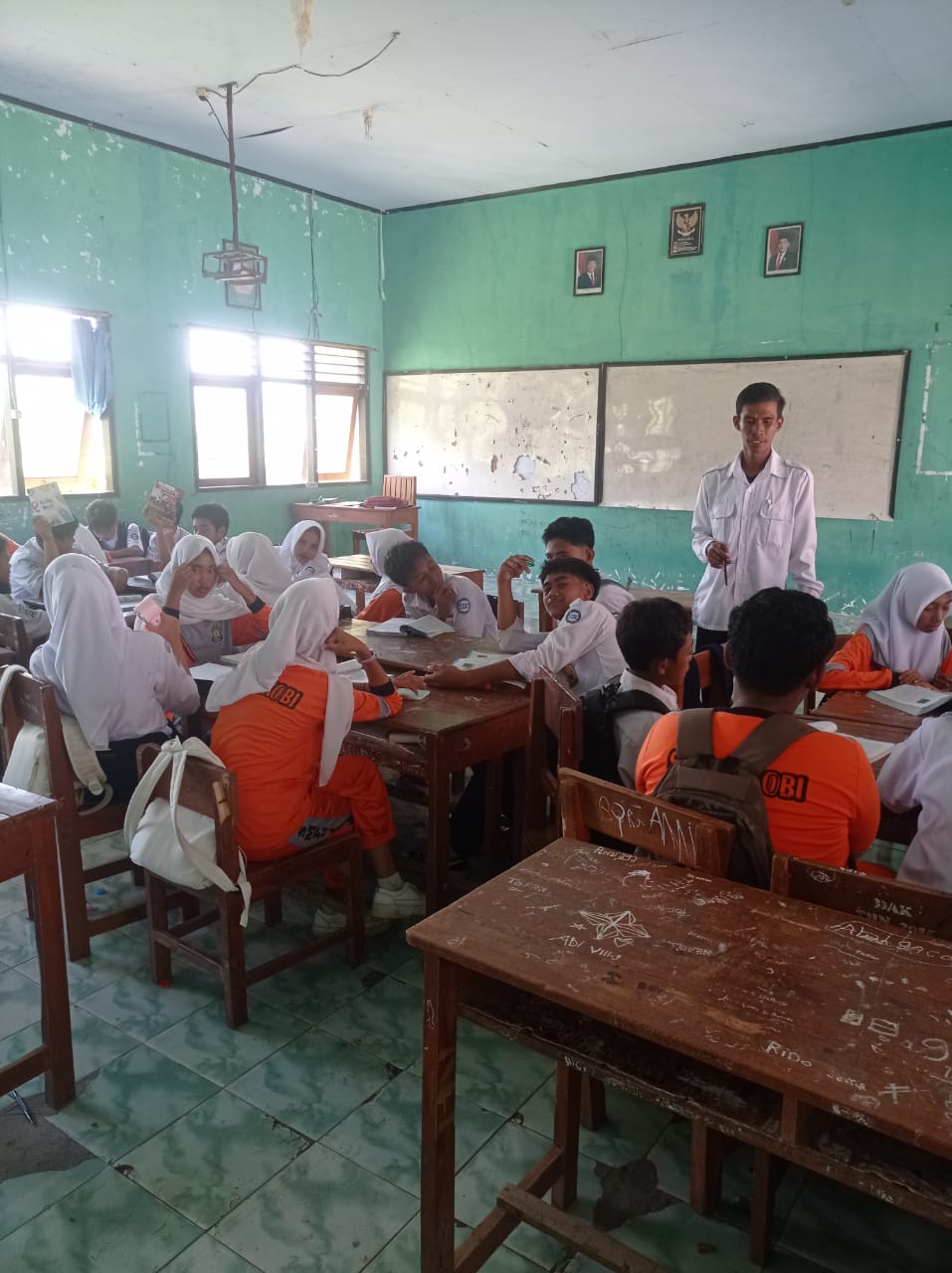 Wali Kelas dan Guru Wali bersih-bersih di kelas 9.9